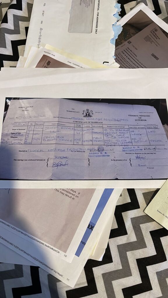 Despite still being legally married to Adeniyi Lawal, a medical worker in the UK, Bunmi left the UK while the rape case against her husband was still ongoing, and traveled to Nigeria to engage in a traditional wedding ceremony with Oba Adekeye. Sources reveal that she forged a divorce certificate in order to present herself as free to marry the king, despite her unresolved legal issues with her first husband.