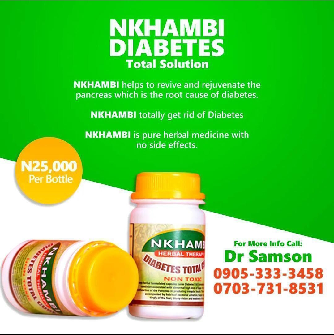 NKHAMBI is a composition of carefully selected herbs across three (3) continents and is formulated into capsules under highly hygienic condition.This medication helps to rejuvenate the cells in the Pancreas that produces insulin in the body.Human bodies uses insulin to take the sugar from carbohydrates we eat and convert to energy that the body requires.