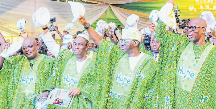 Those present included elder statesman Aremo Olusegun Osoba, Senators Solomon Adeola and Shuaibu Salisu, party chairman Yemisi Sanusi, Speaker Oludaisi Elemide, Deputy Governor Noimot Salako-Oyedele, and several former deputy governors and senators.