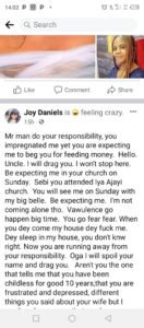 Few days back, Otabajo allegedly stormed the internet with a pseudonym JoyDaniels but with her face on the profile to allege of being impregnated by her married lover.
